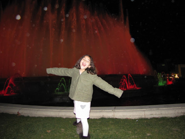 This satisfactory trip with only a five minute walk from our apartment was very fun for all of us. Nolan was especially fascinated by how the Magic Fountain of Montjuic descended into brilliant colors. He proudly pointed out the colors of the crystal clear water. It was enjoyable to watch the fresh aqua dance to music, but this fountain wasn't the only one that wowed us on this trip. As soon as we went into the park, we were welcomed by the lovely fragrance of the springs. There was clean h2o blossoming in excitement of our arrival. Once we passed the blooming fountains and colorful dancing fountain, there was a stone set of stairs with jumping springs that let us know we would love what was at the top. Sure enough, we did. At the top was a beautiful waterfall with glistening water splashing down. Everyone there was overwhelmed by the beauty of this park. It is no wonder they call it magical.