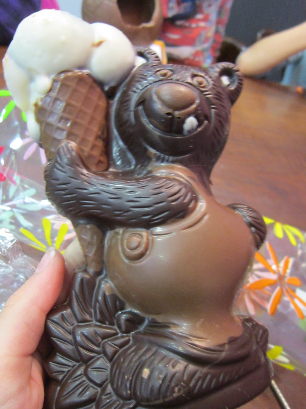 Cassandra got a chocolate bunny holding a beautifully designed egg, Sofia got a